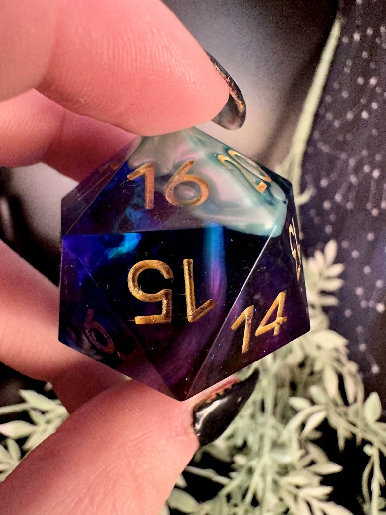 -These dice are bespoke handmade functional art pieces. This means they are not flawless ; they will have some small cosmetic flaws (small bubbles on the surface or in the dice themselves, micro-scratches on the surface, mold or inclusion marks, and carved in numbers. Some dice will have been patched with additional resin. This can cause small variations in color/visual lines) Anything worse than these flaws will be discounted.