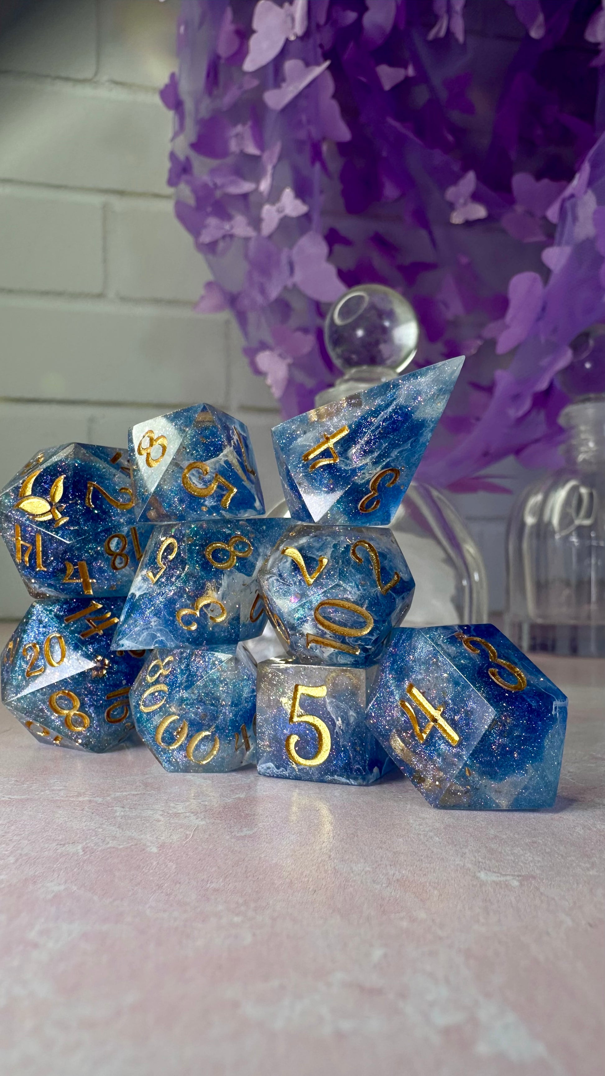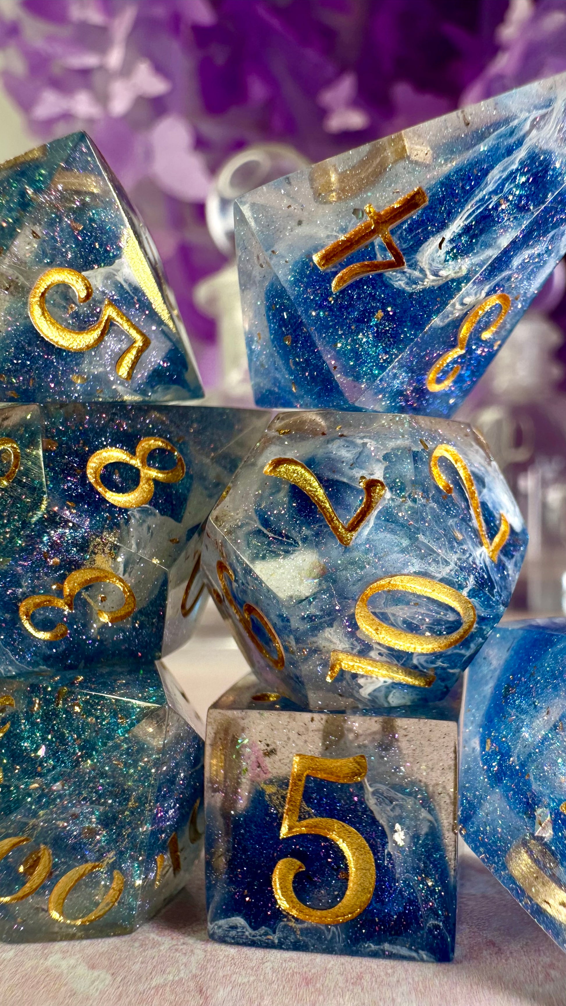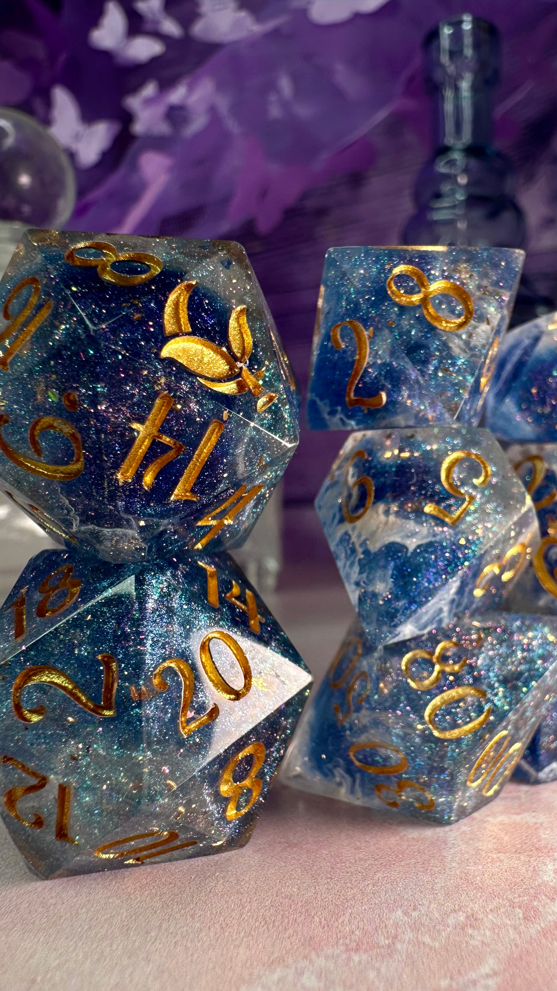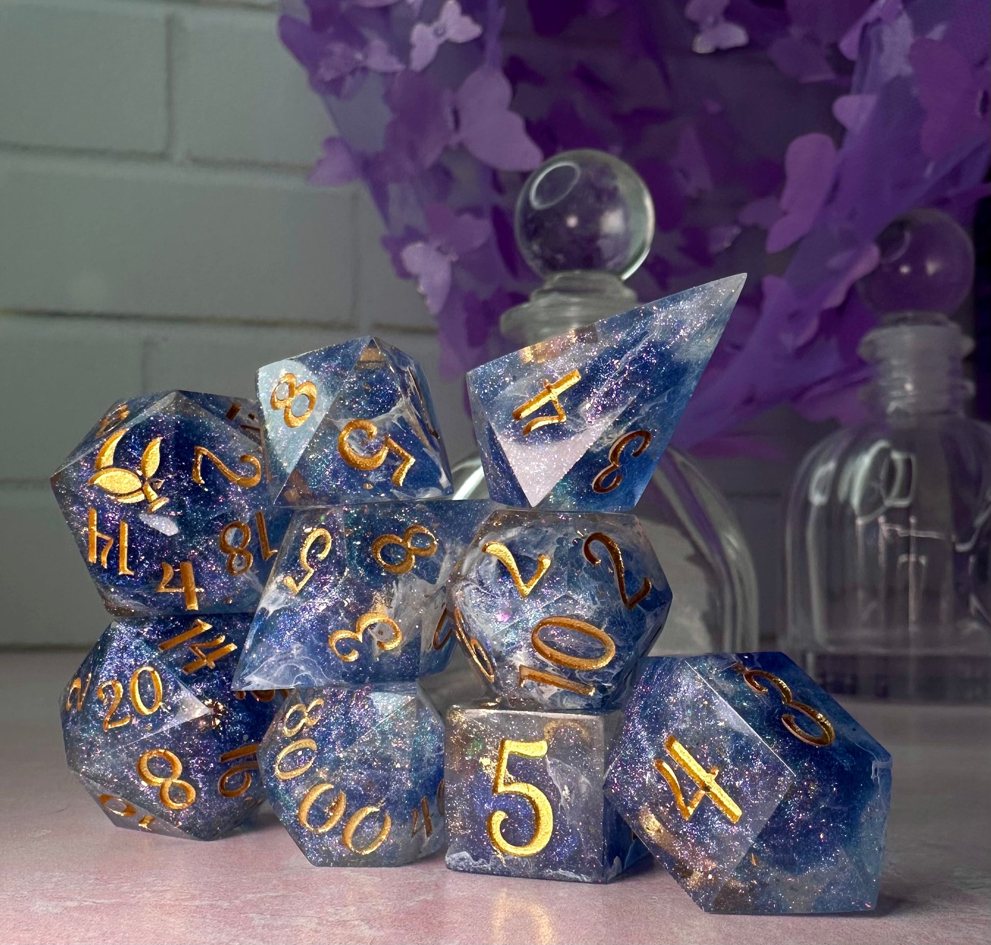 -These dice are bespoke handmade functional art pieces. This means they are not flawless ; they will have some small cosmetic flaws (small bubbles on the surface or in the dice themselves, micro-scratches on the surface, mold or inclusion marks, and carved in numbers. Some dice will have been patched with additional resin. This can cause small variations in color/visual lines) Anything worse than these flaws will be discounted and marked as such