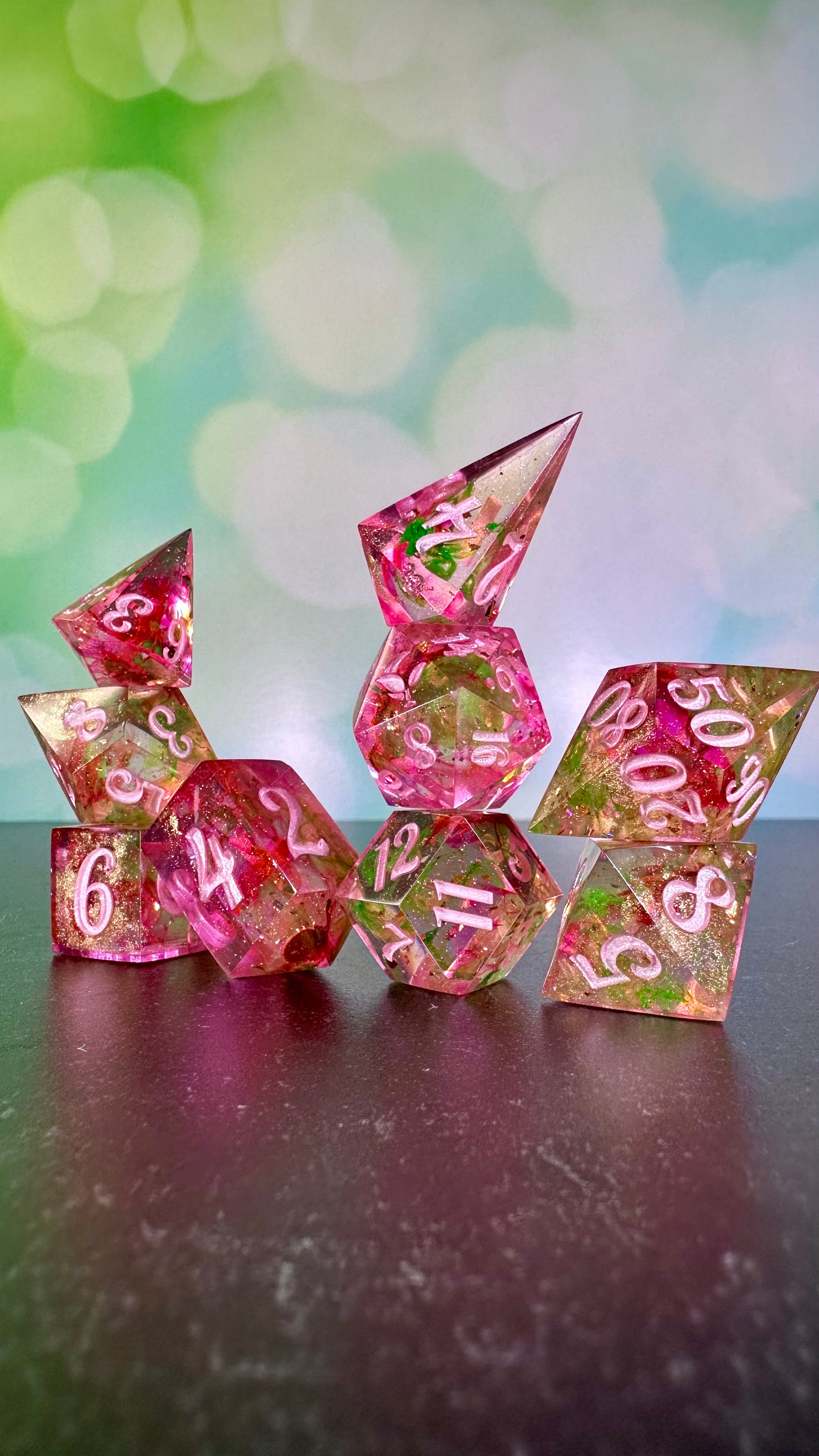 Kore, Goddess of Spring 9 piece polyhedral dice set (Large) (Beta) Pobody's Nerfect
