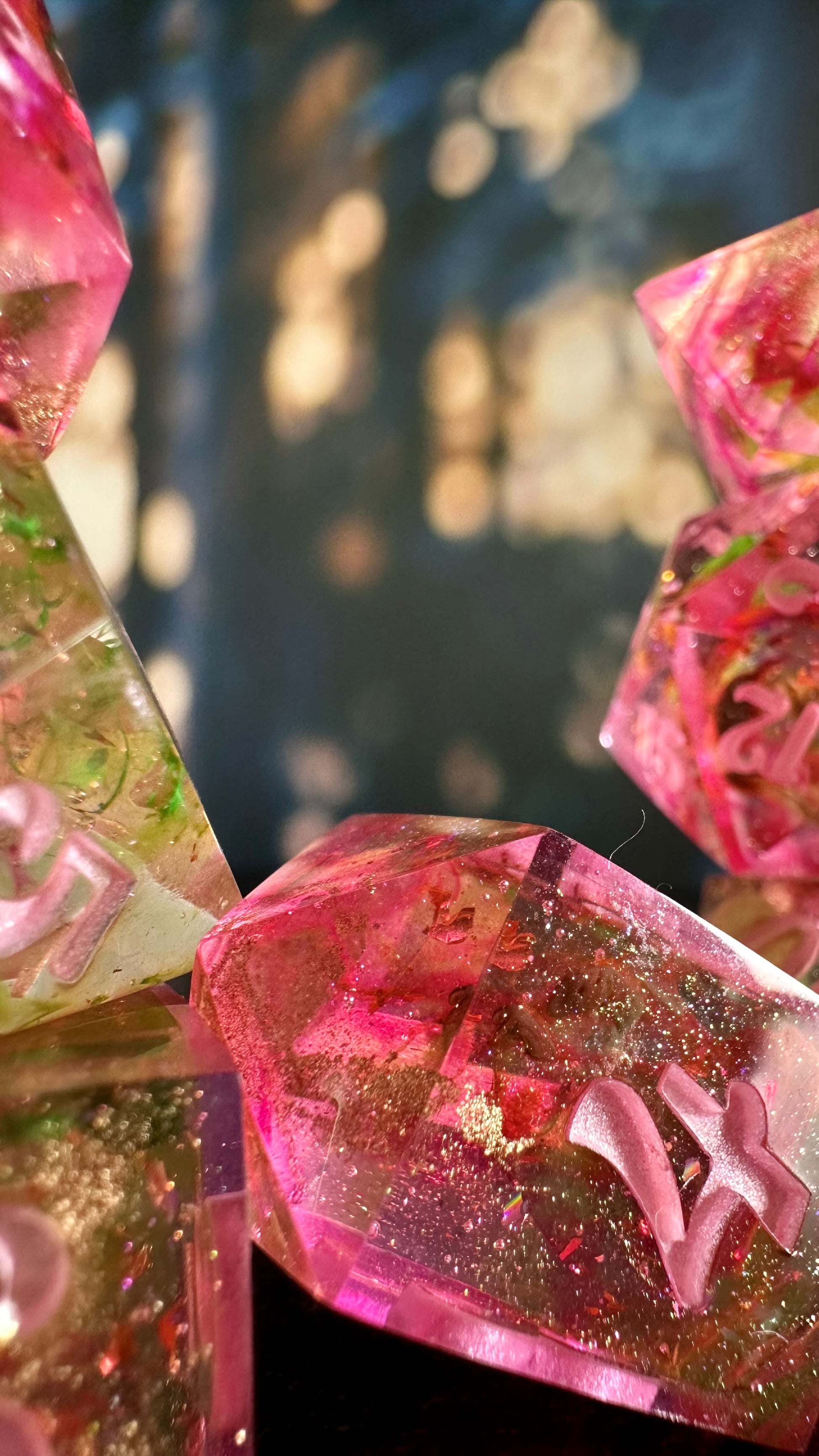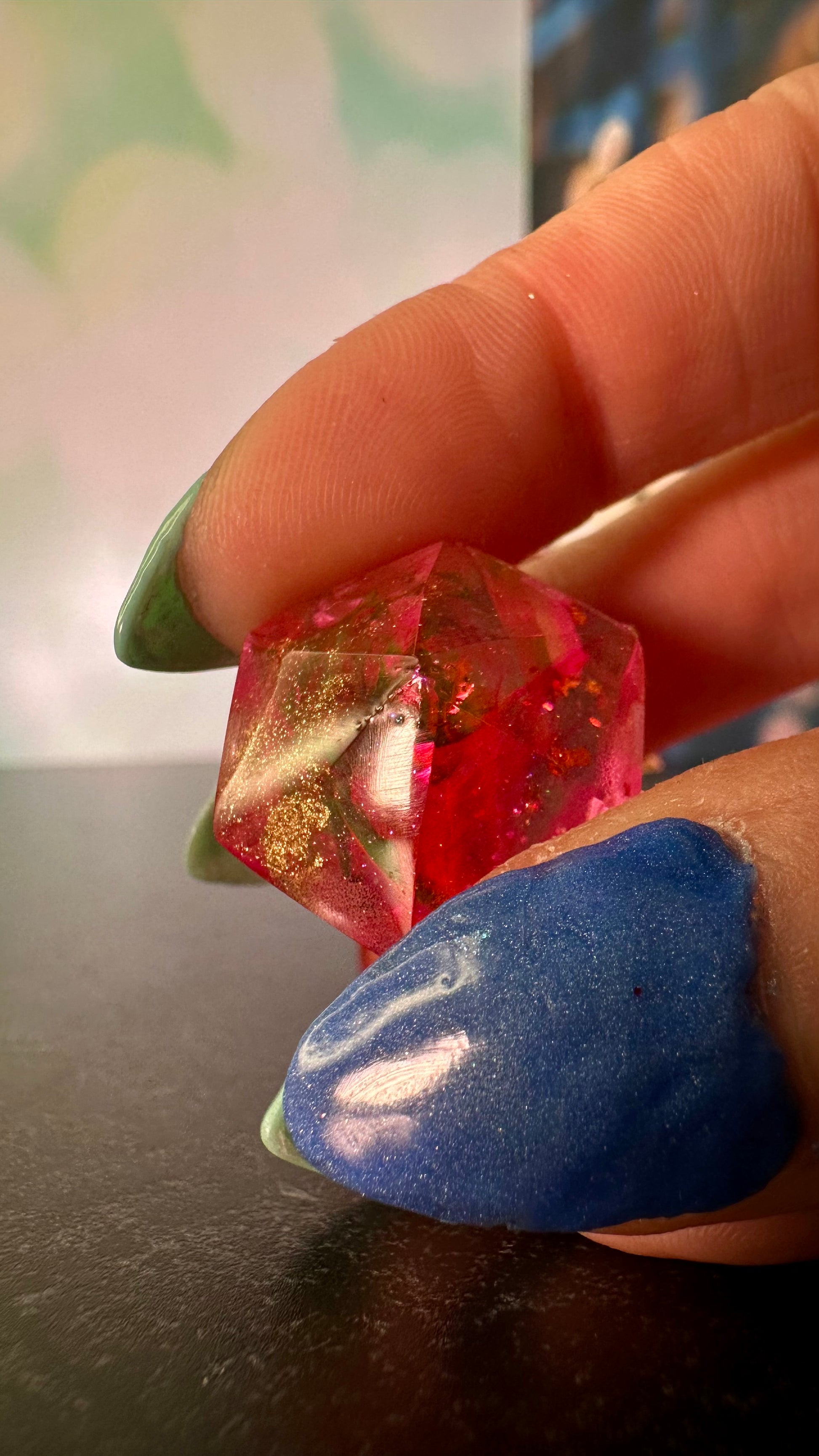 -These dice are bespoke handmade functional art pieces. This means they are not flawless ; they will have some small cosmetic flaws (small bubbles on the surface or in the dice themselves, micro-scratches on the surface, mold or inclusion marks, and carved in numbers. Some dice will have been patched with additional resin. This can cause small variations in color/visual lines) Anything worse than these flaws will be discounted and marked as such