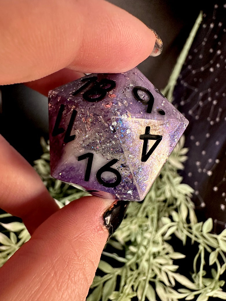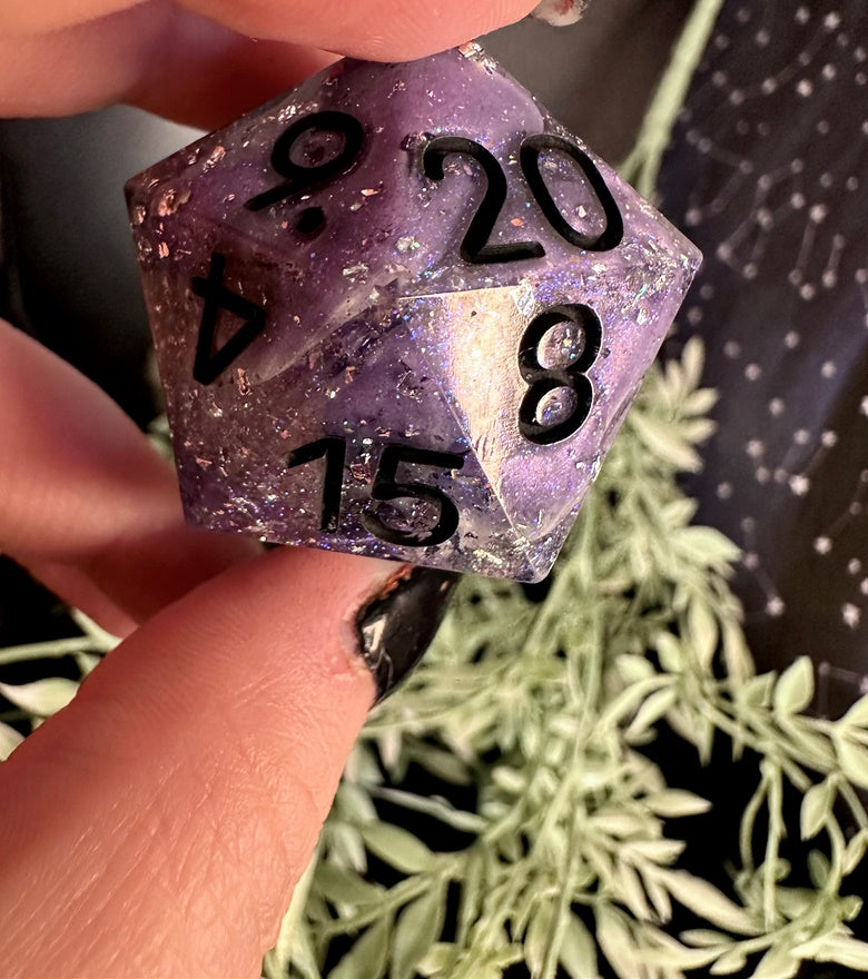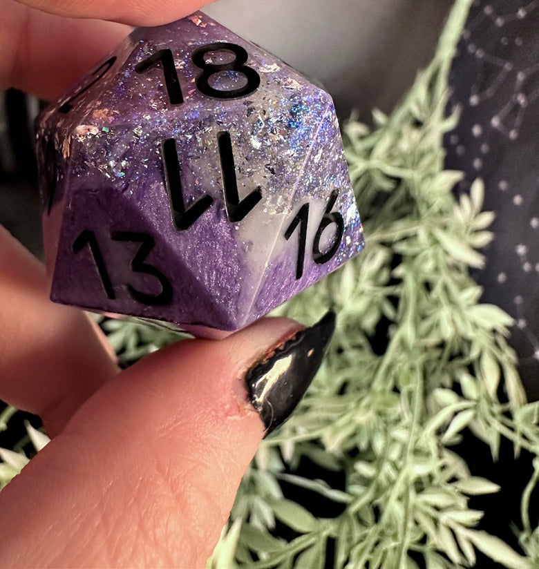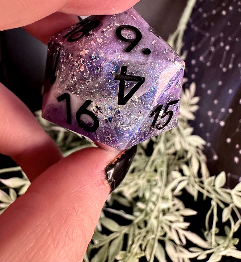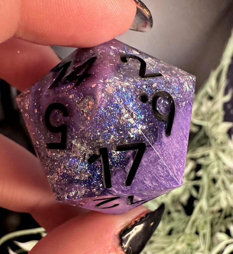-These dice are bespoke handmade functional art pieces. This means they are not flawless ; they will have some small cosmetic flaws (small bubbles on the surface or in the dice themselves, micro-scratches on the surface, mold or inclusion marks, and carved in numbers. Some dice will have been patched with additional resin. This can cause small variations in color/visual lines) Anything worse than these flaws will be discounted.