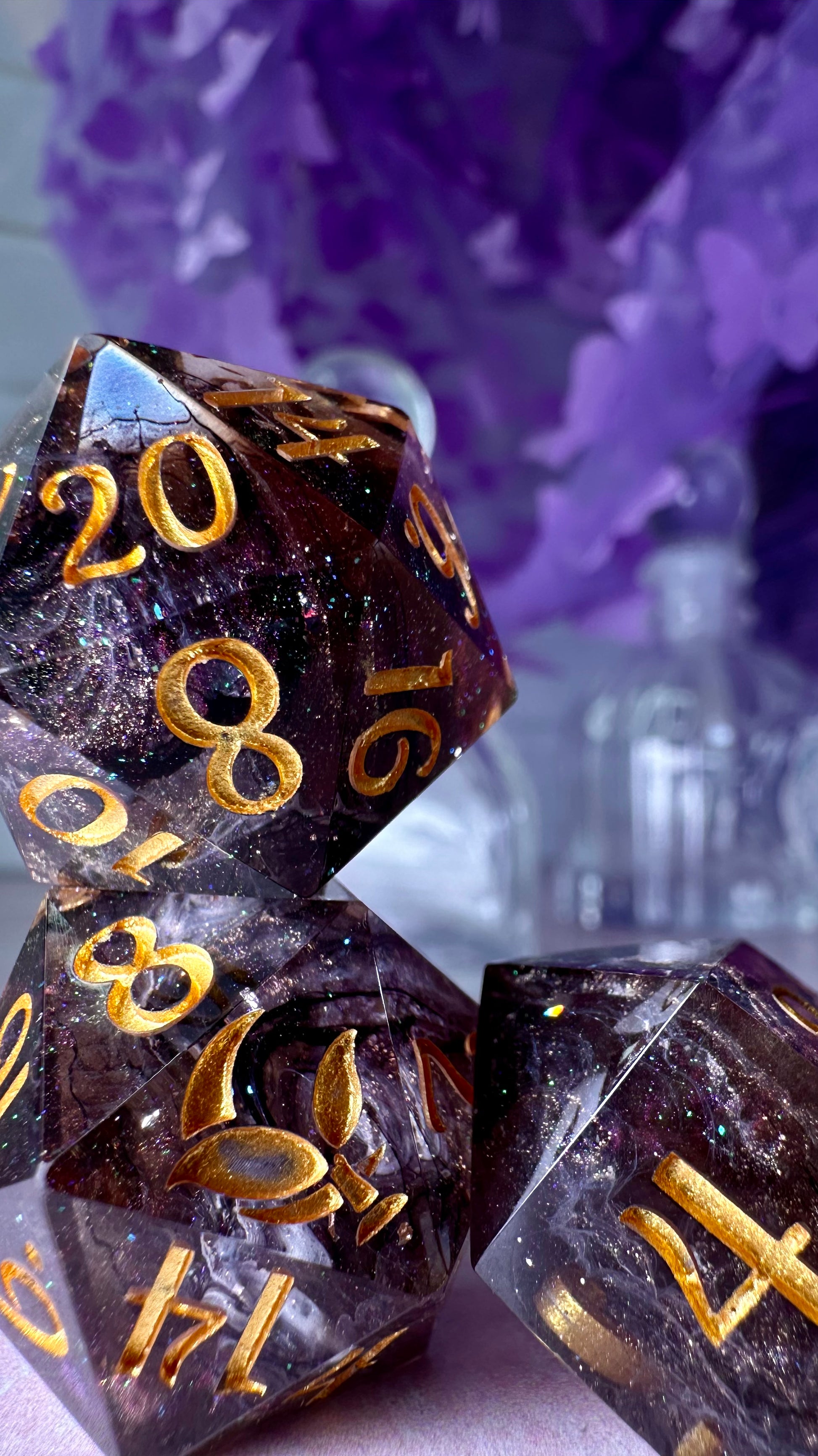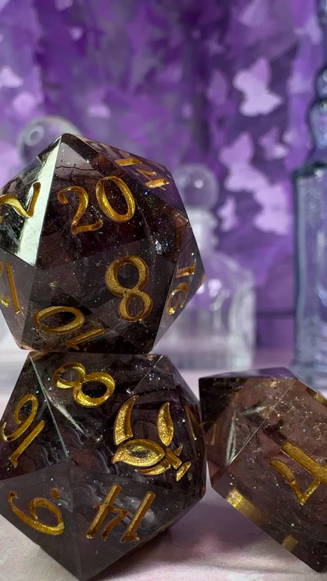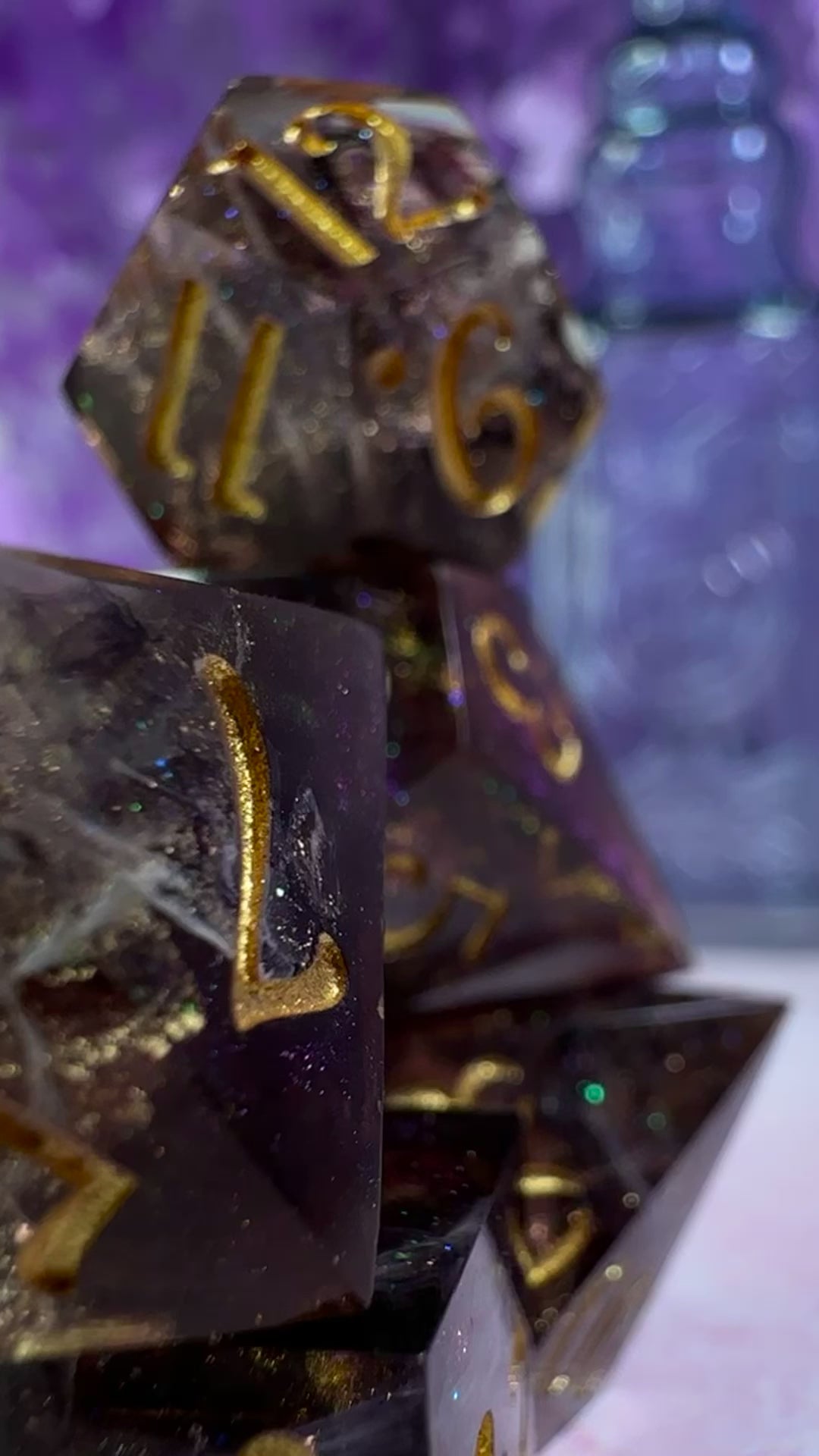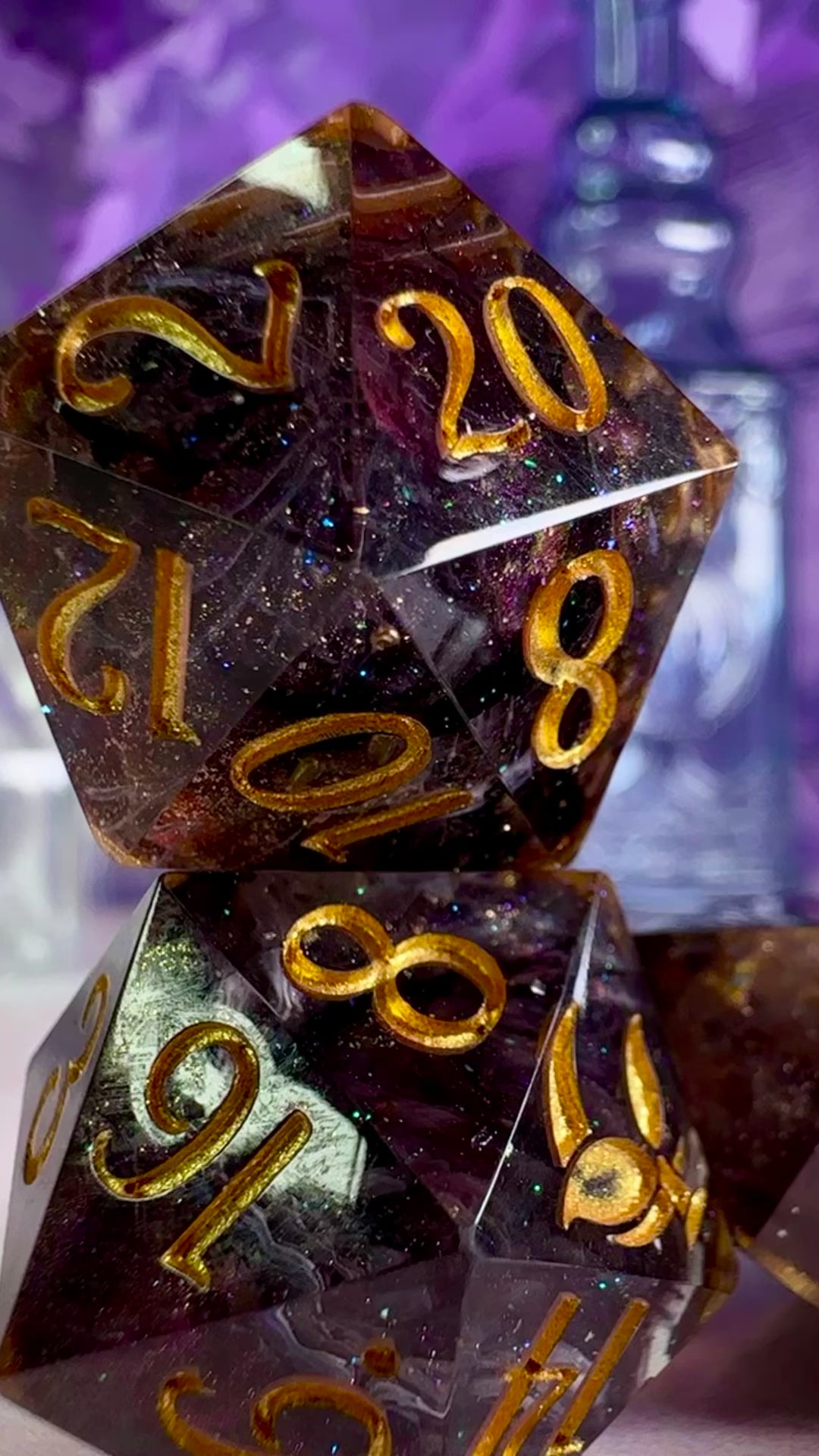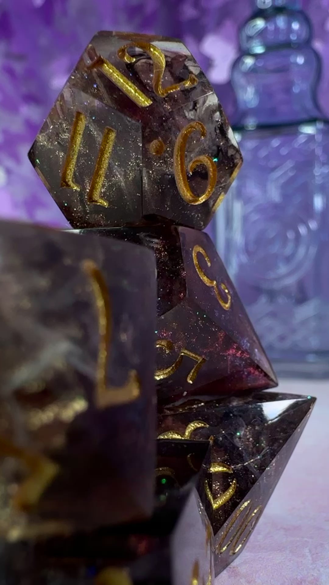 -These dice are bespoke handmade functional art pieces. This means they are not flawless ; they will have some small cosmetic flaws (small bubbles on the surface or in the dice themselves, micro-scratches on the surface, mold or inclusion marks, and carved in numbers. Some dice will have been patched with additional resin. This can cause small variations in color/visual lines) Anything worse than these flaws will be discounted and marked as such