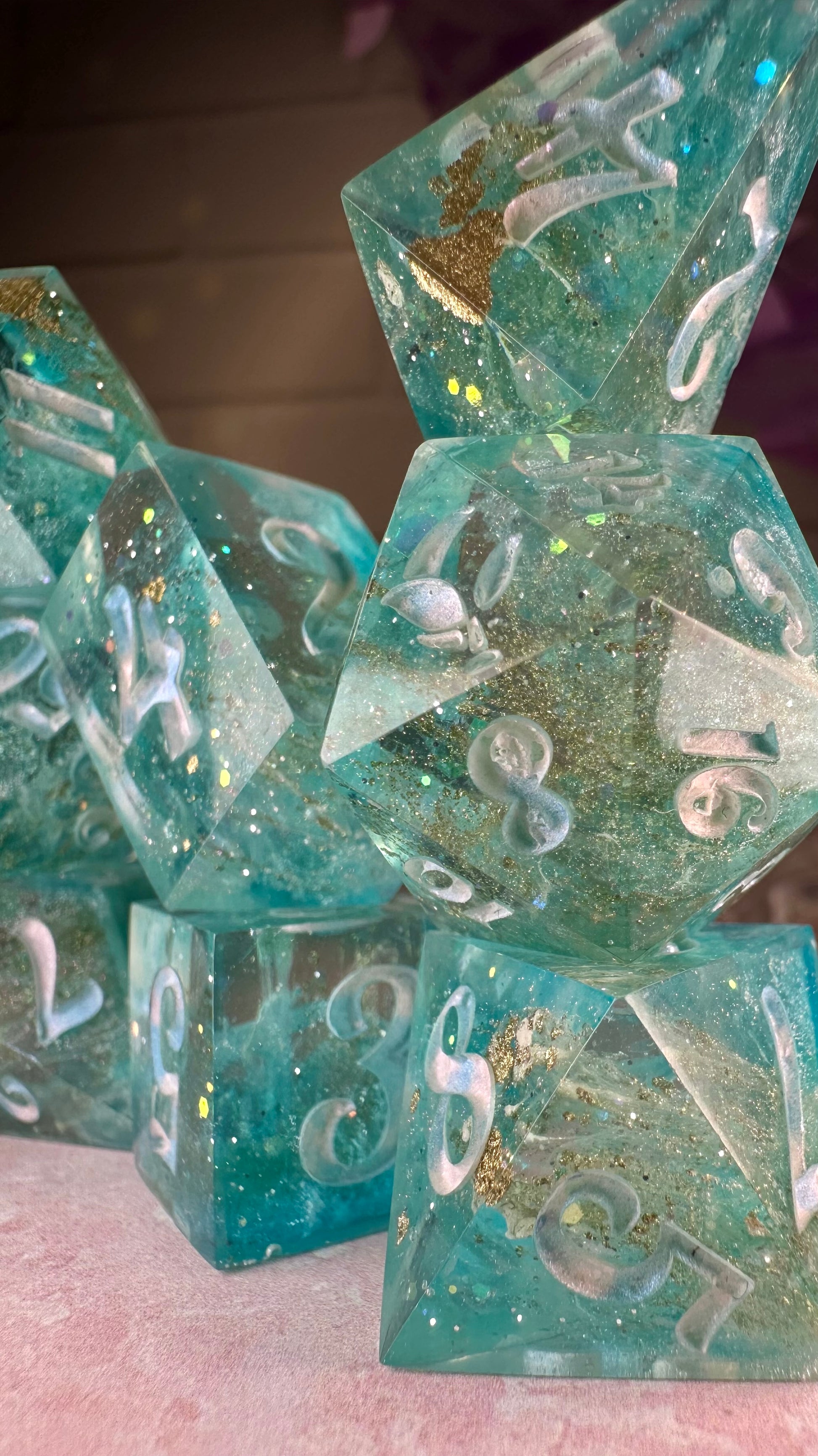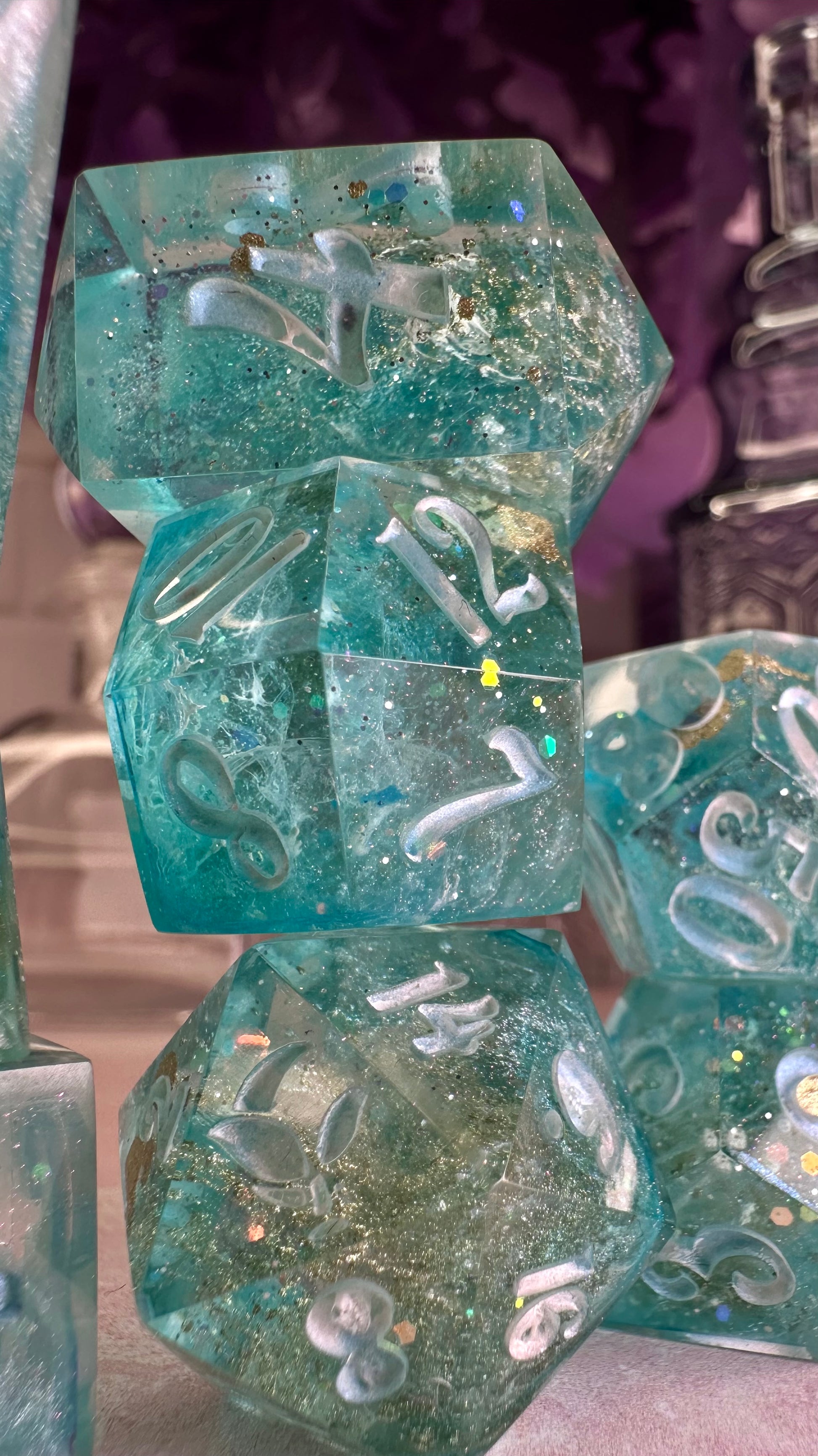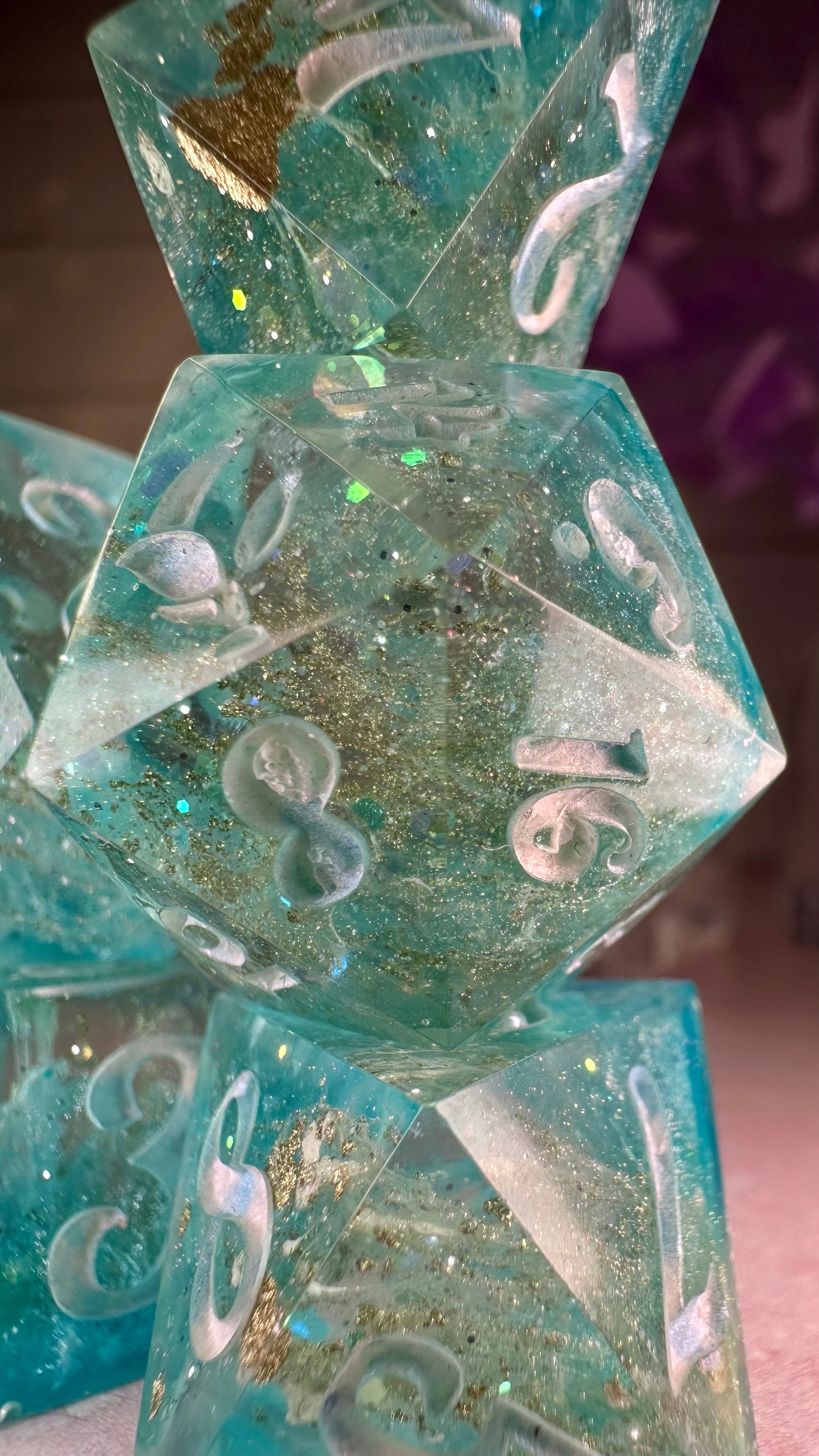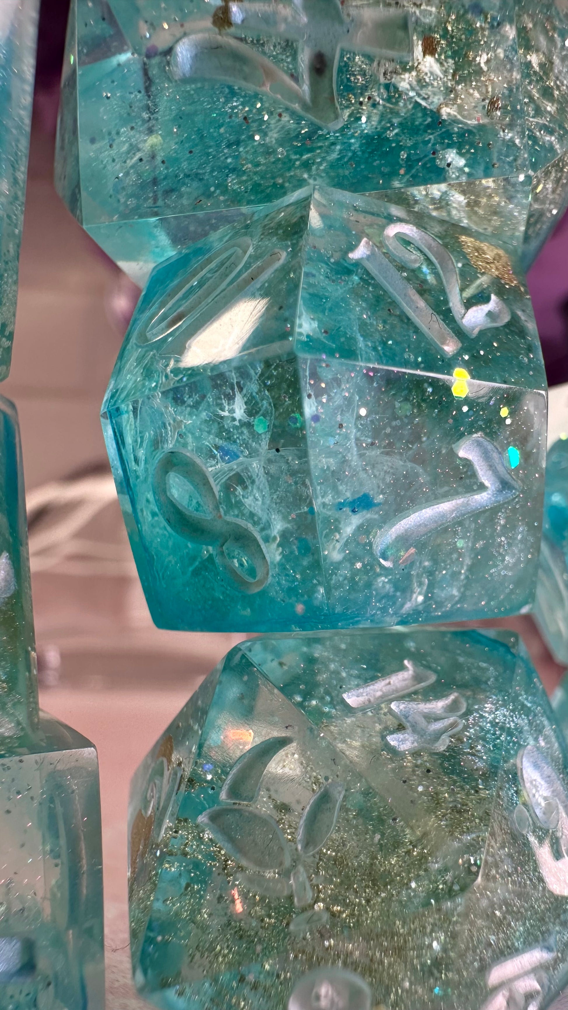 -These dice are bespoke handmade functional art pieces. This means they are not flawless ; they will have some small cosmetic flaws (small bubbles on the surface or in the dice themselves, micro-scratches on the surface, mold or inclusion marks, and carved in numbers. Some dice will have been patched with additional resin. This can cause small variations in color/visual lines) Anything worse than these flaws will be discounted and marked as such