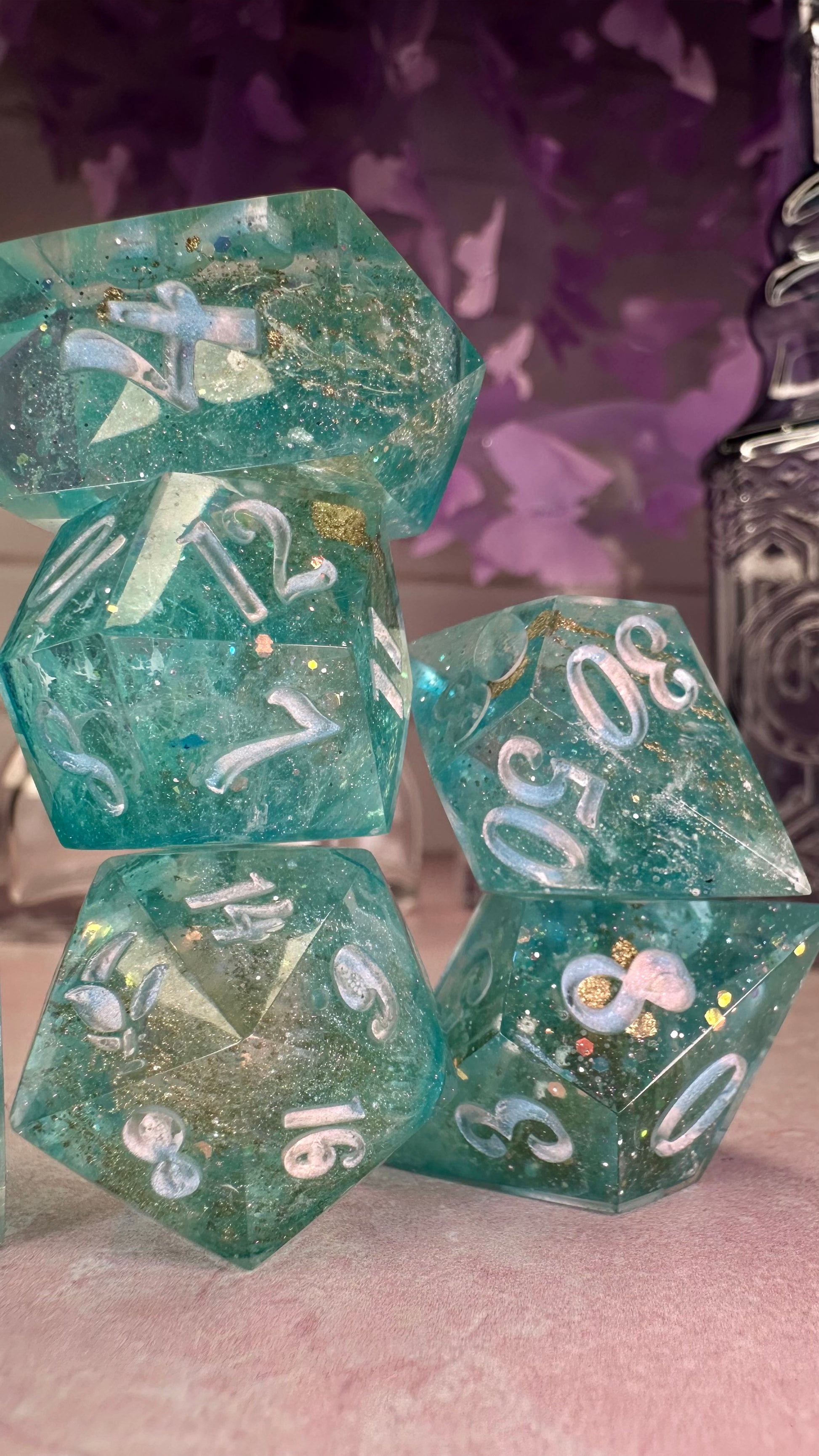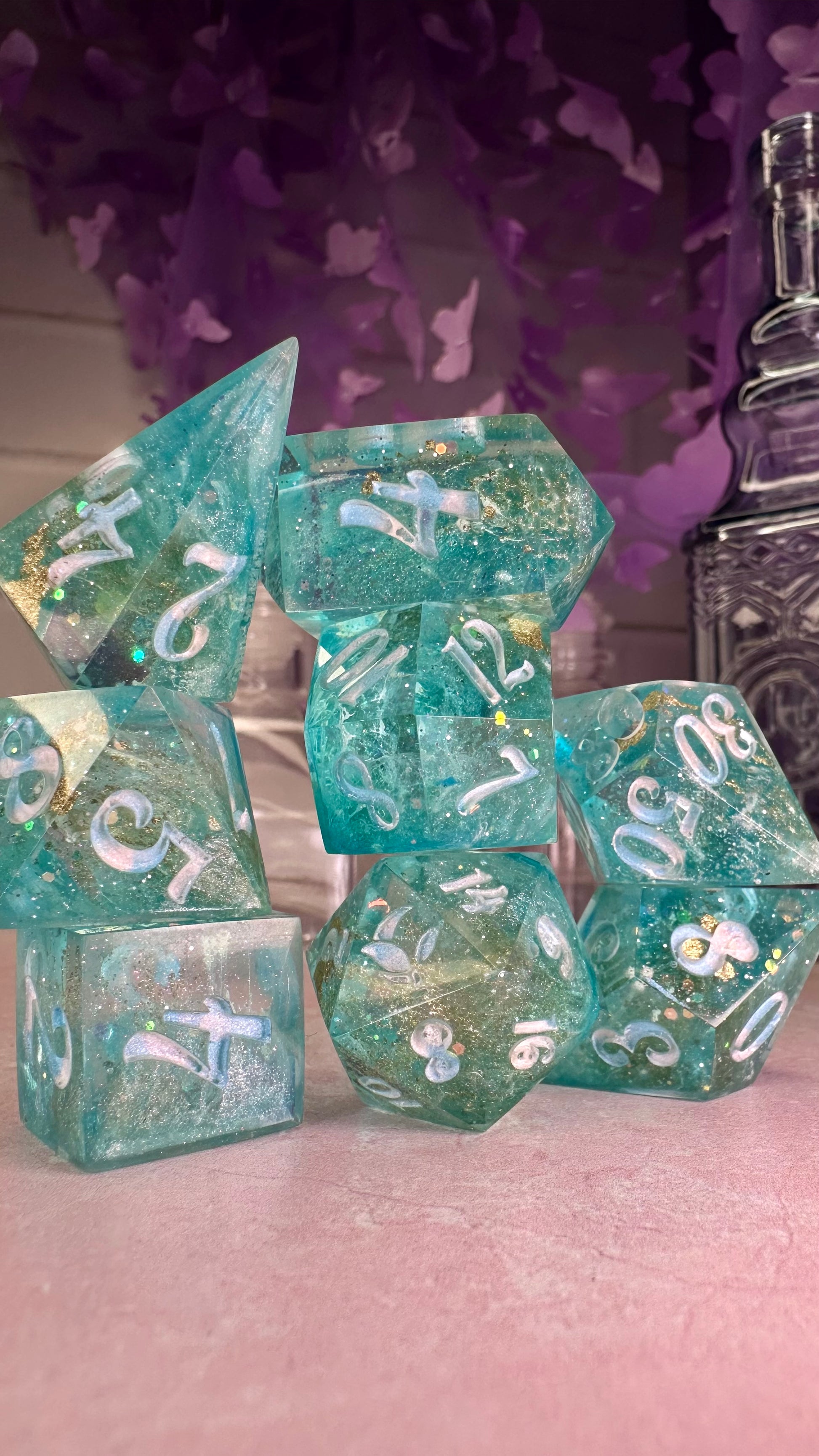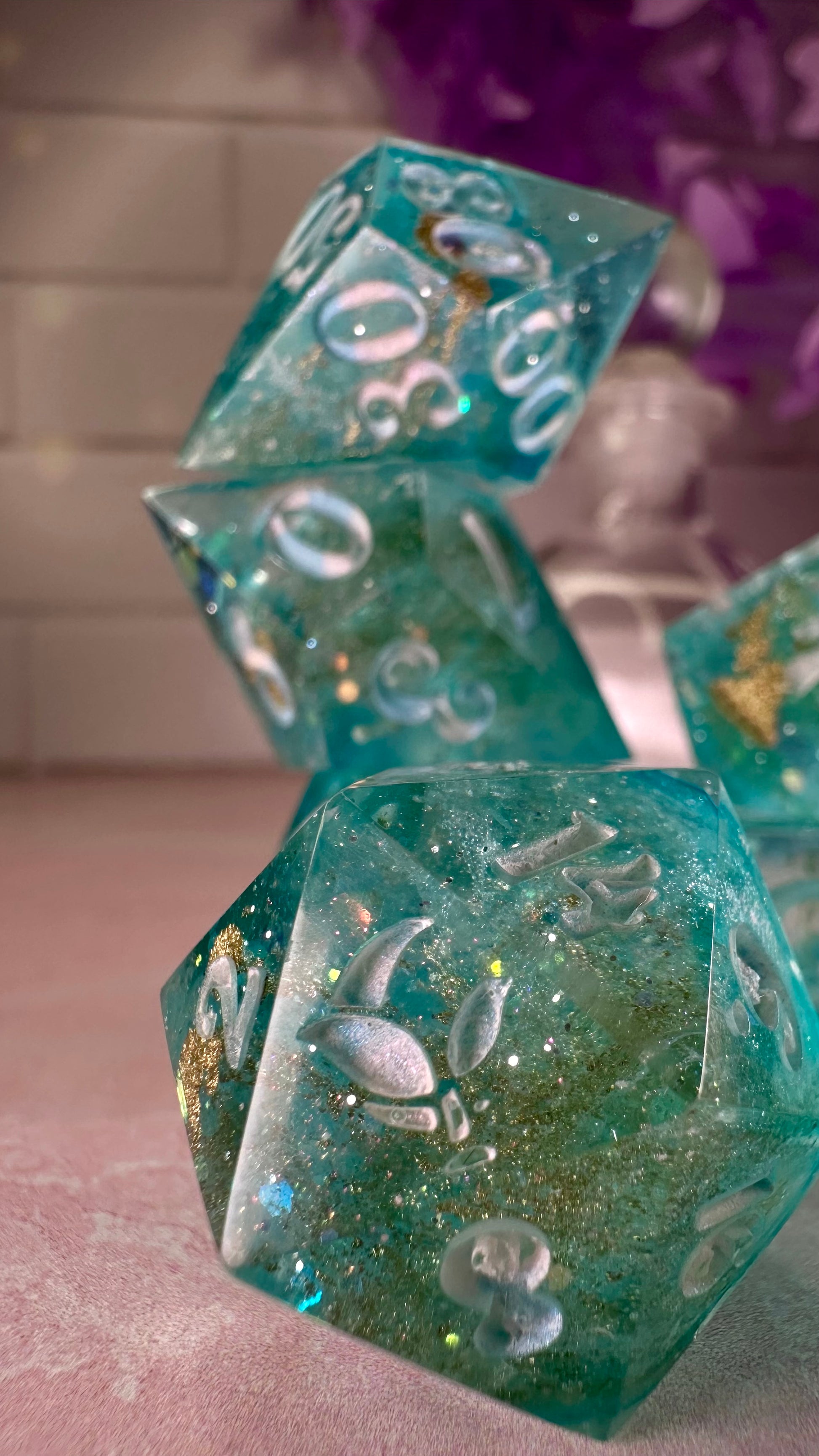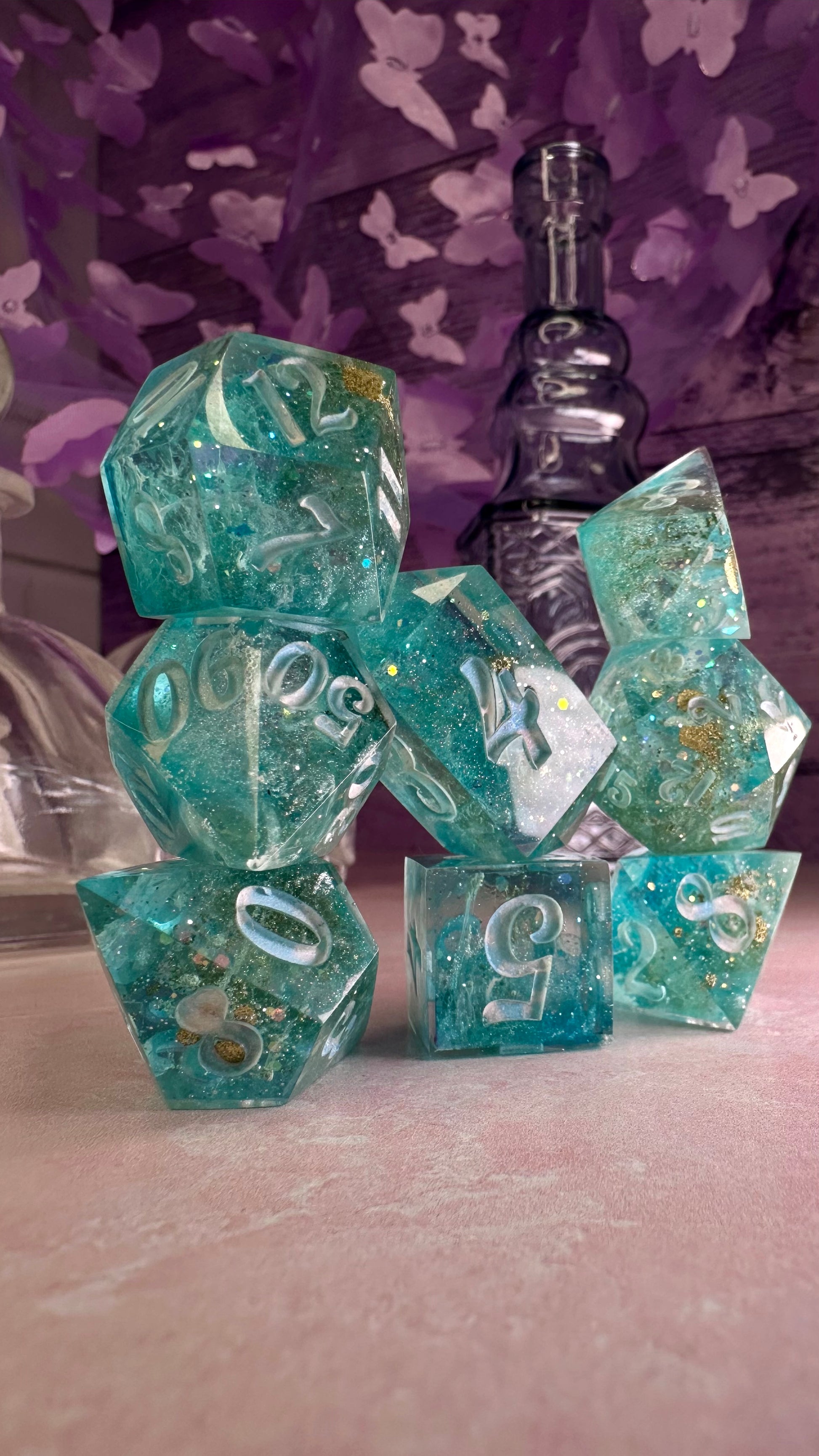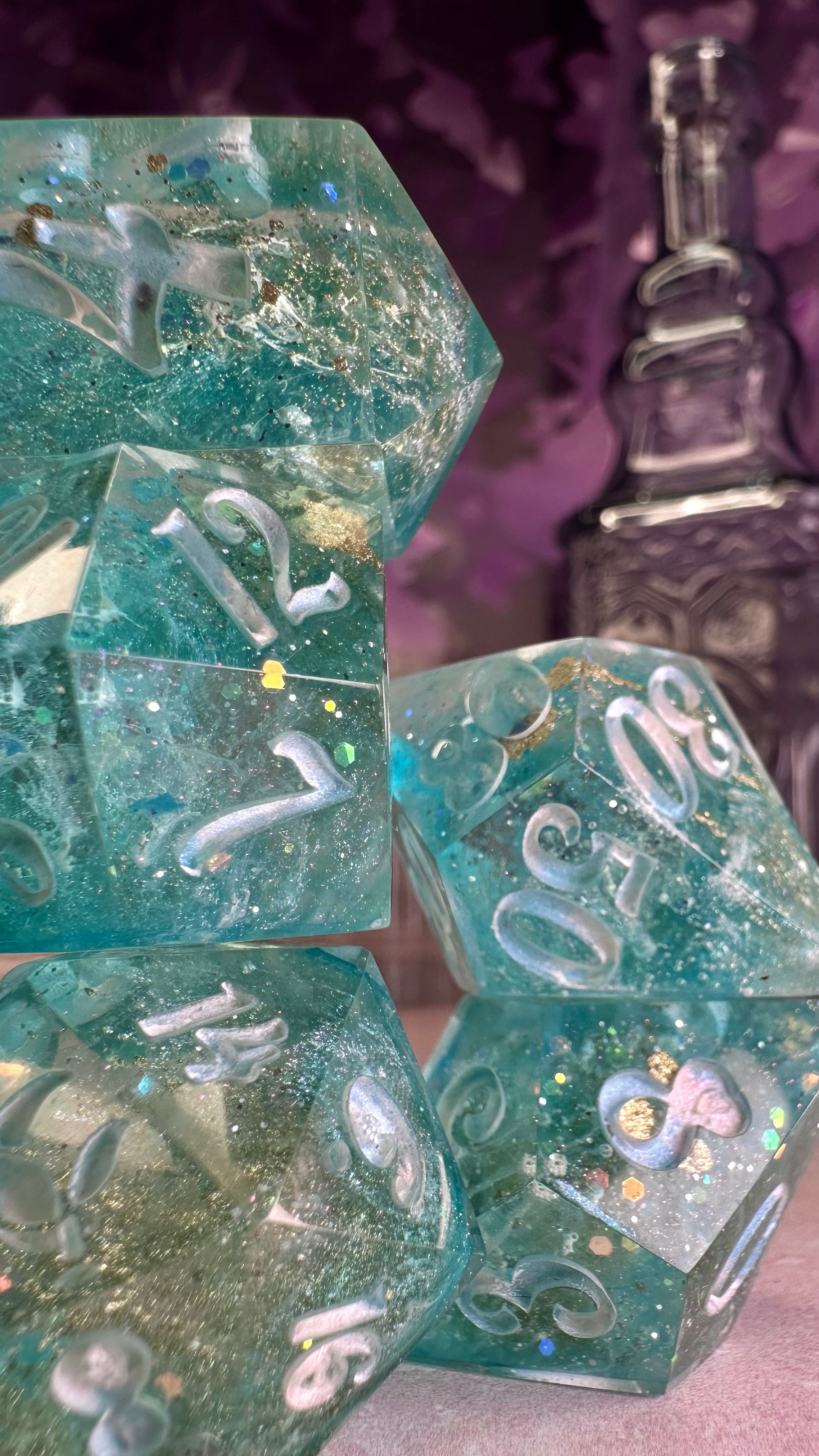 -These dice are bespoke handmade functional art pieces. This means they are not flawless ; they will have some small cosmetic flaws (small bubbles on the surface or in the dice themselves, micro-scratches on the surface, mold or inclusion marks, and carved in numbers. Some dice will have been patched with additional resin. This can cause small variations in color/visual lines) Anything worse than these flaws will be discounted and marked as such