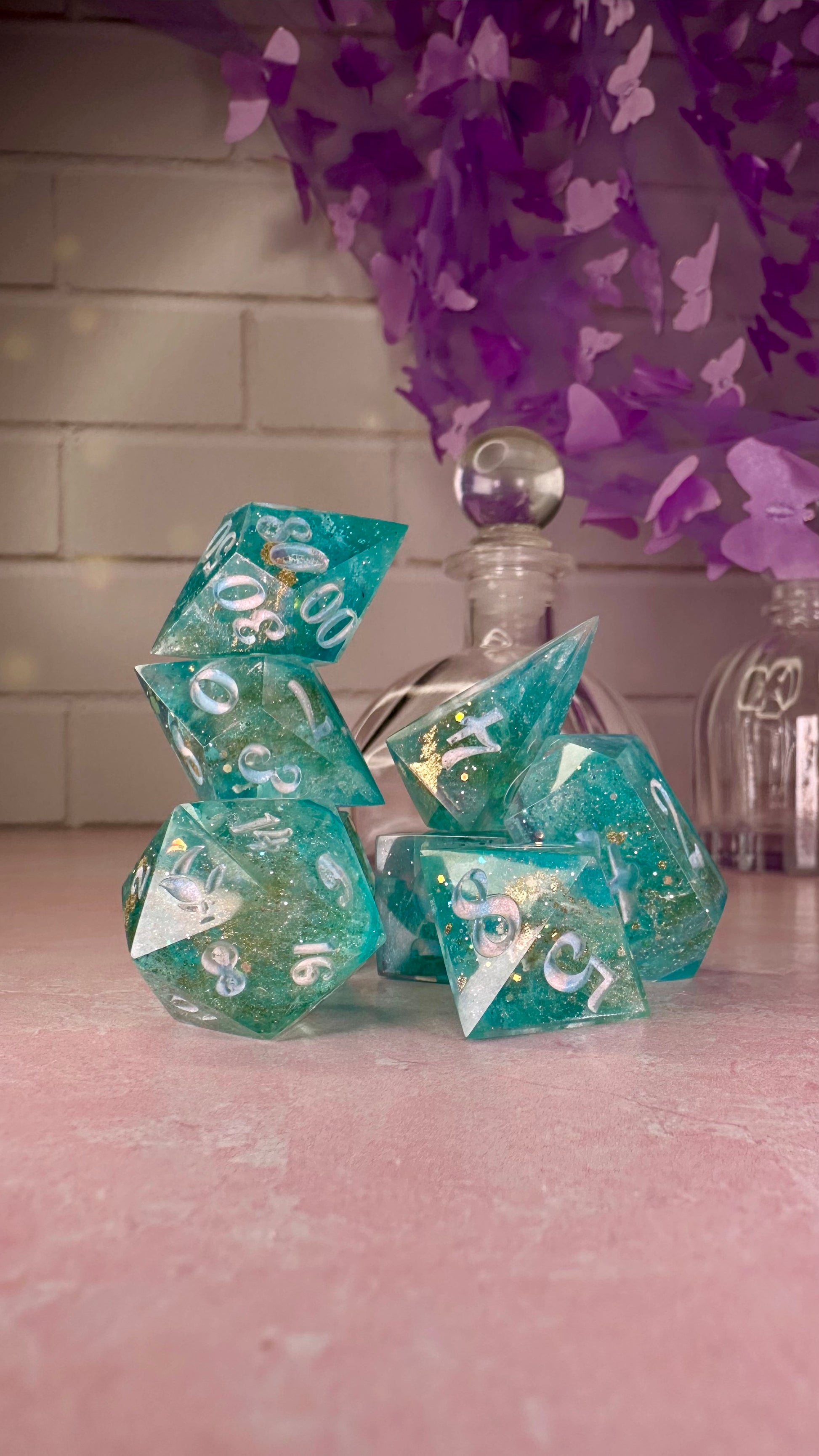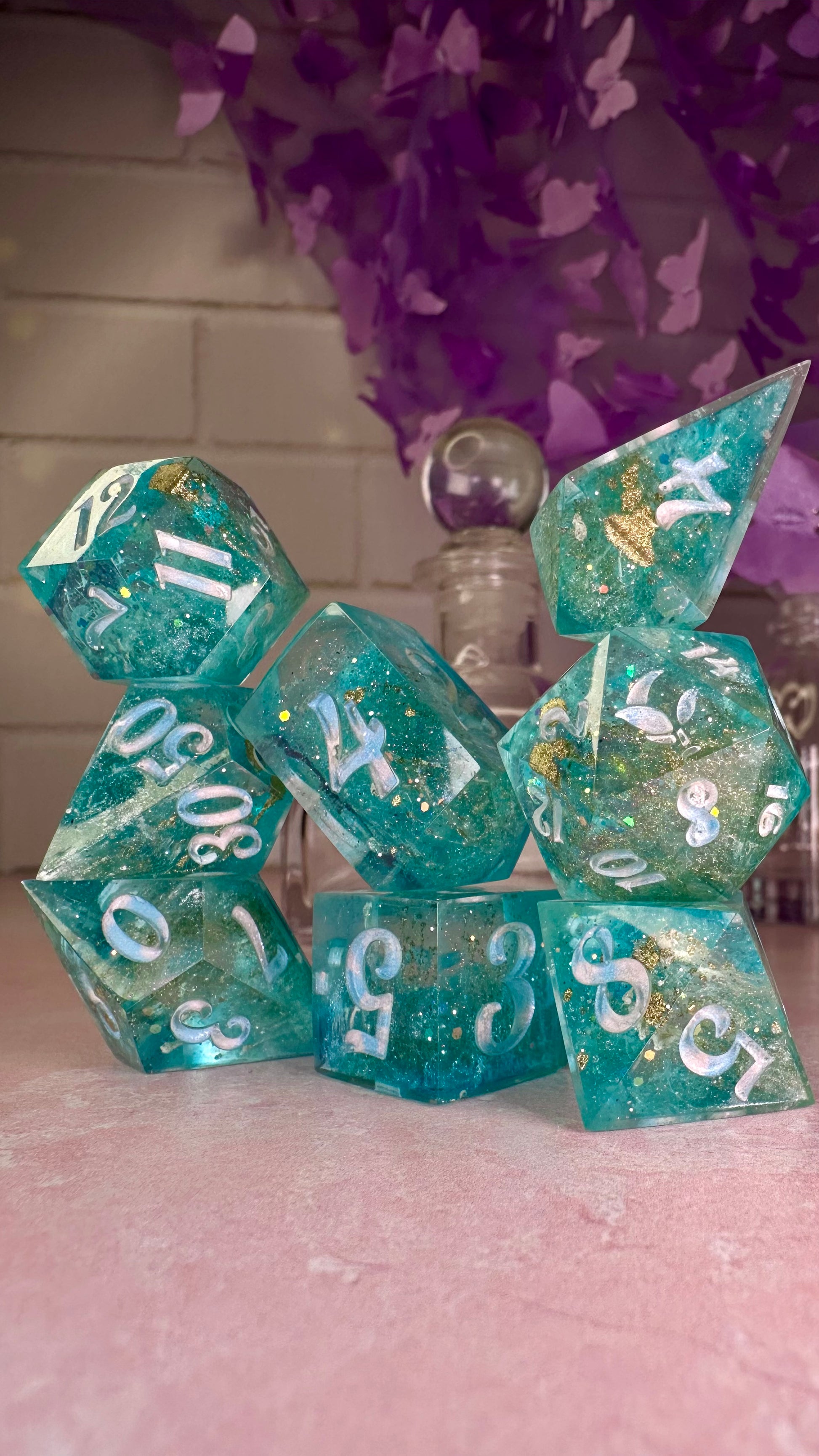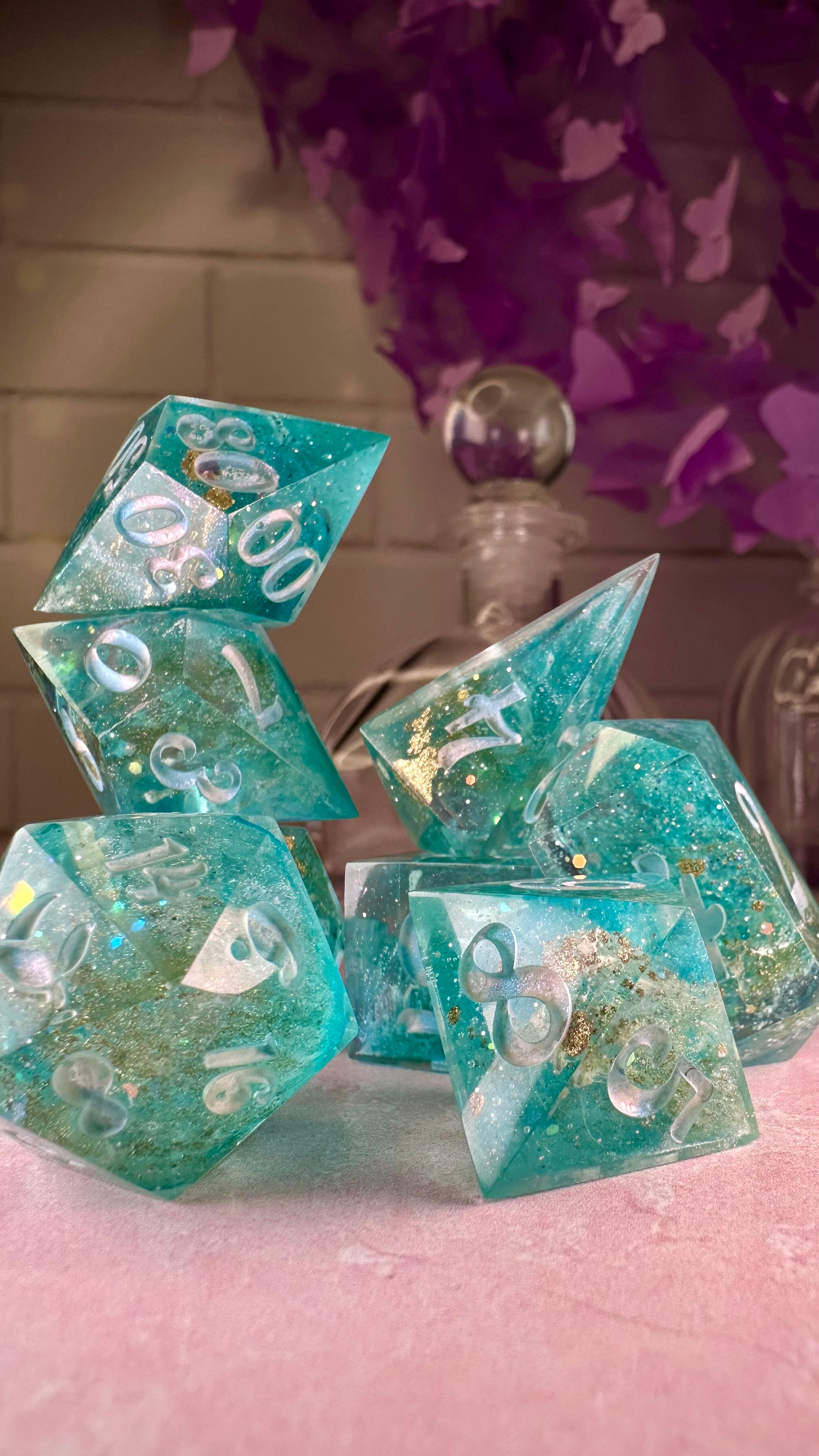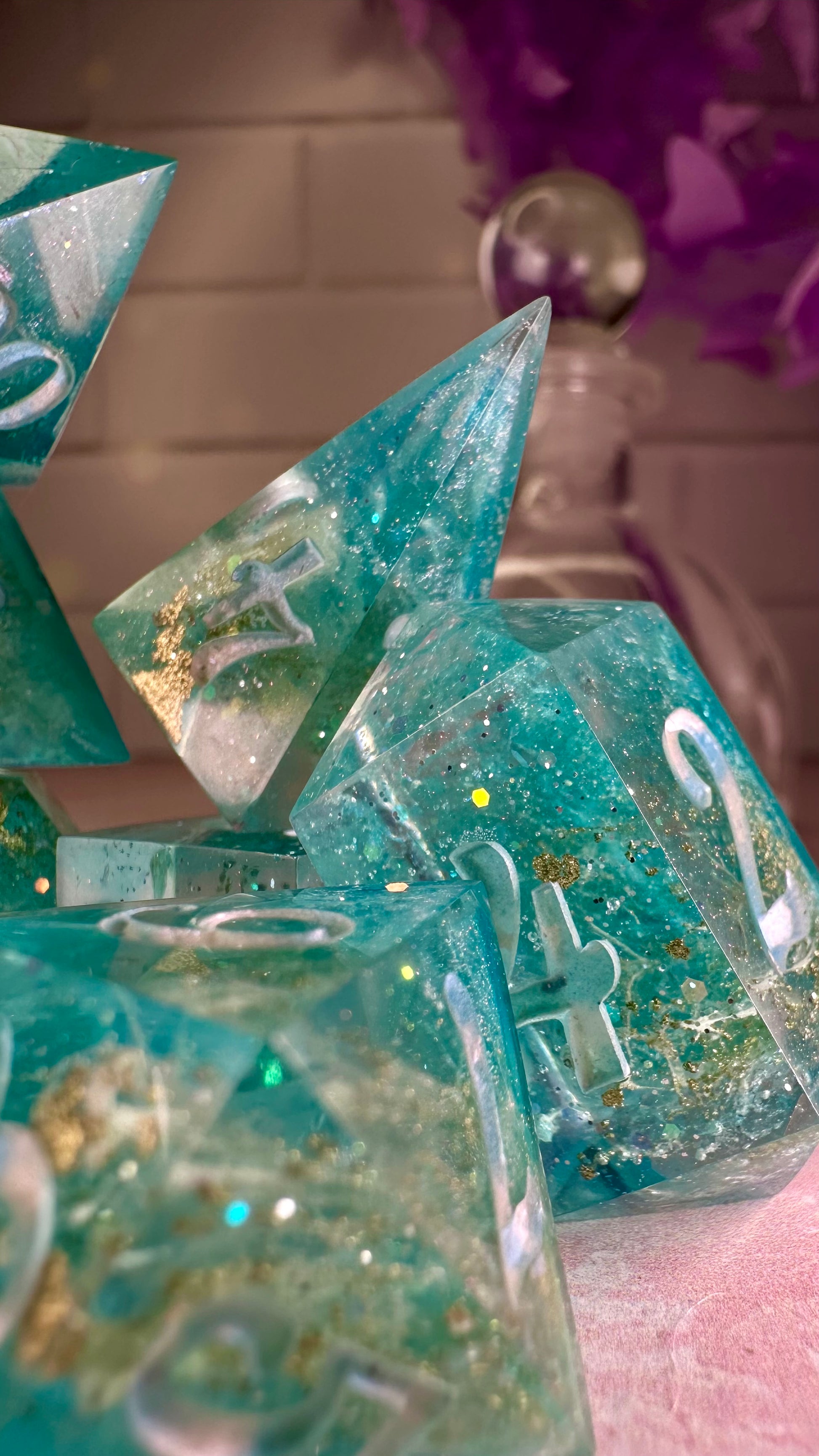 -These dice are bespoke handmade functional art pieces. This means they are not flawless ; they will have some small cosmetic flaws (small bubbles on the surface or in the dice themselves, micro-scratches on the surface, mold or inclusion marks, and carved in numbers. Some dice will have been patched with additional resin. This can cause small variations in color/visual lines) Anything worse than these flaws will be discounted and marked as such